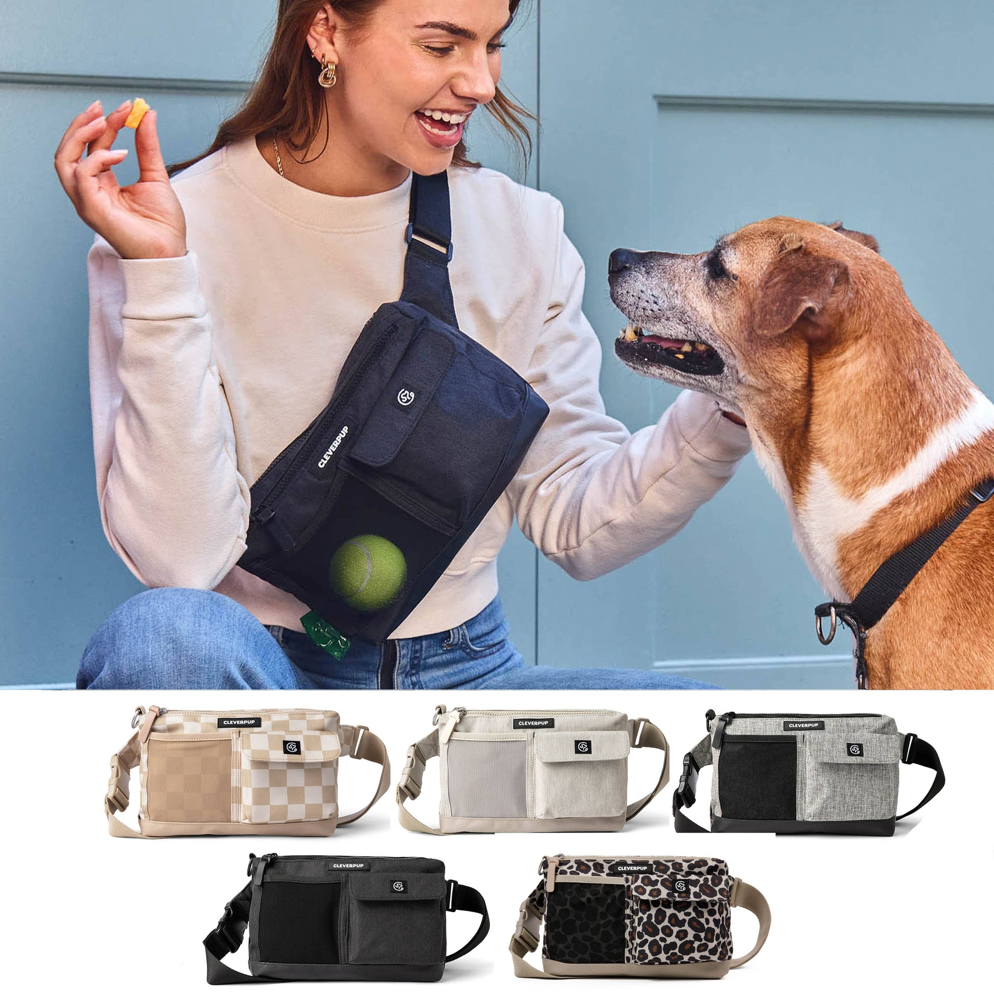 A super-stylish, compact, hands-free bag for dog walks with easy access to treats, poop bags, a tennis ball, and a training squeaker. Wear it as a crossbody or belt bag—there’s even space for your phone and wallet.
