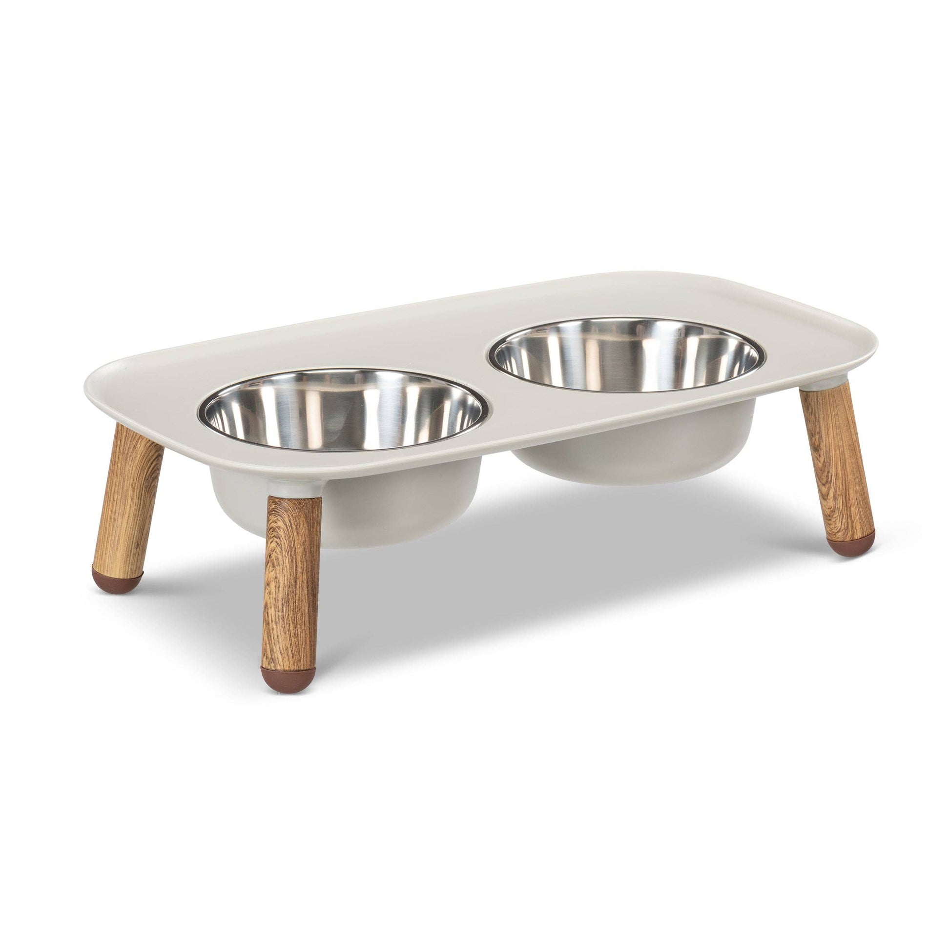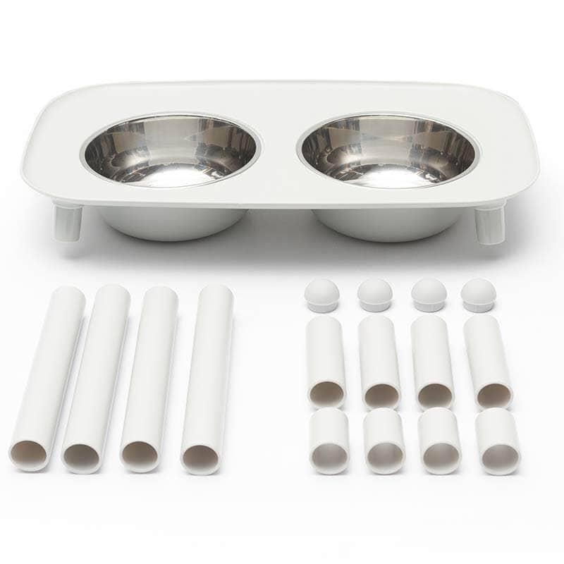 Messy Mutt Elevated Double Dog Feeder, Adjustable Height: Light Grey