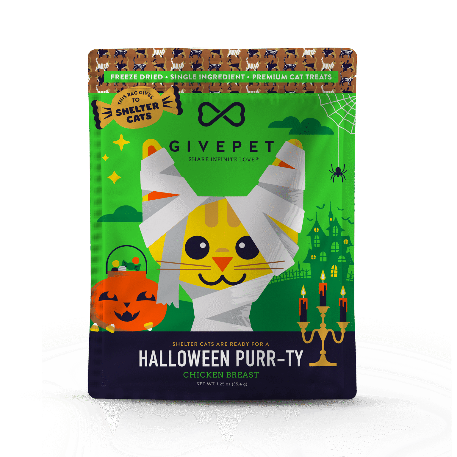 1.25 oz bag of freeze-dried cat treats with one ingredient – chicken breast. Designed for even the most finicky of cats! A perfect Halloween treat for your favorite feline!