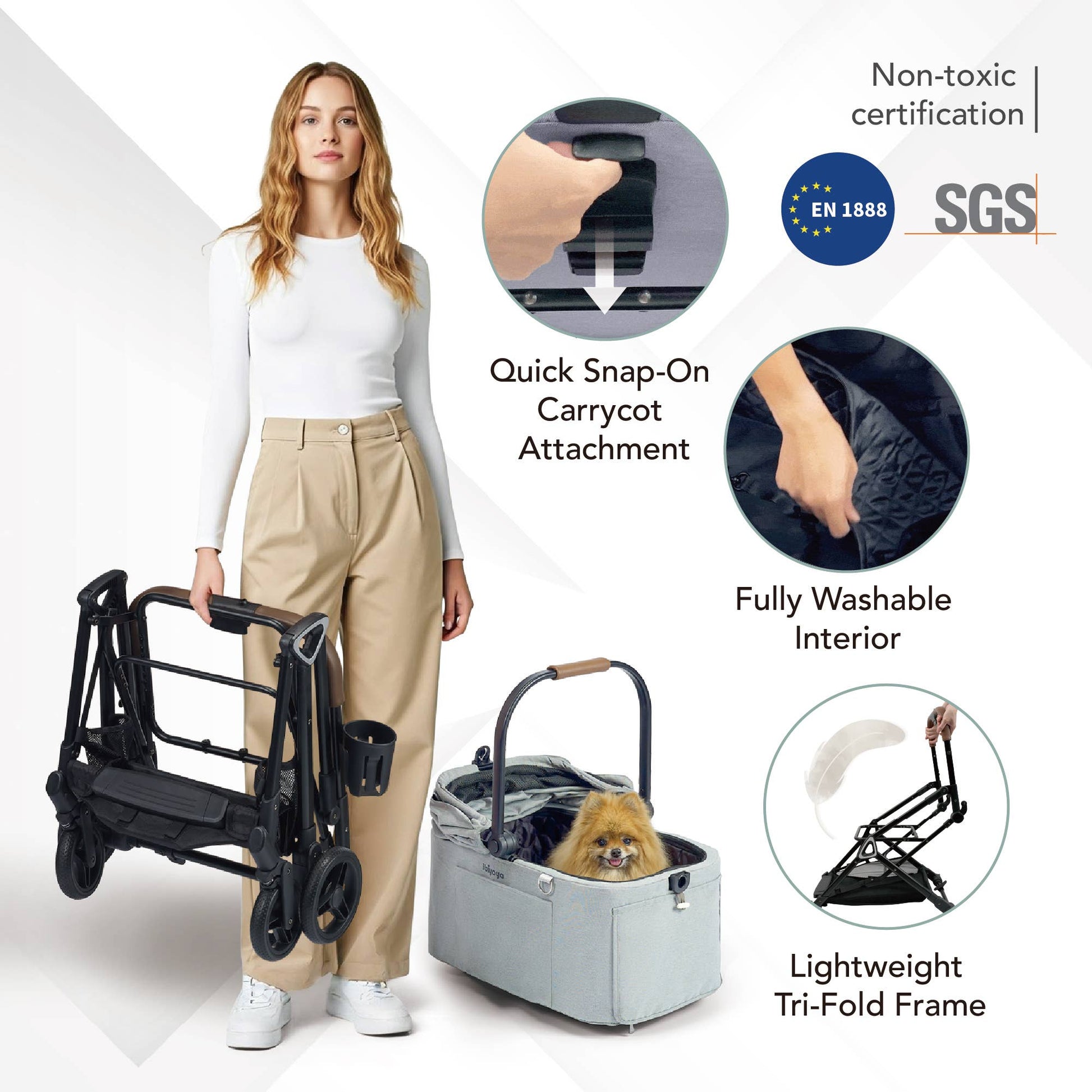 ⦁ Manufactured to SGS-tested stroller safety standards