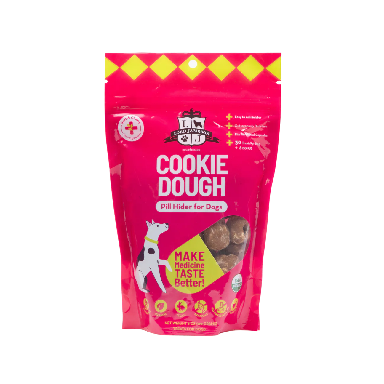 Texture confusion decreases the chance of your dog spitting out the pill. We leave real bits peanuts and oats in our dough to confuse the dog's palate leaving them unable to differentiate between pill or treat.