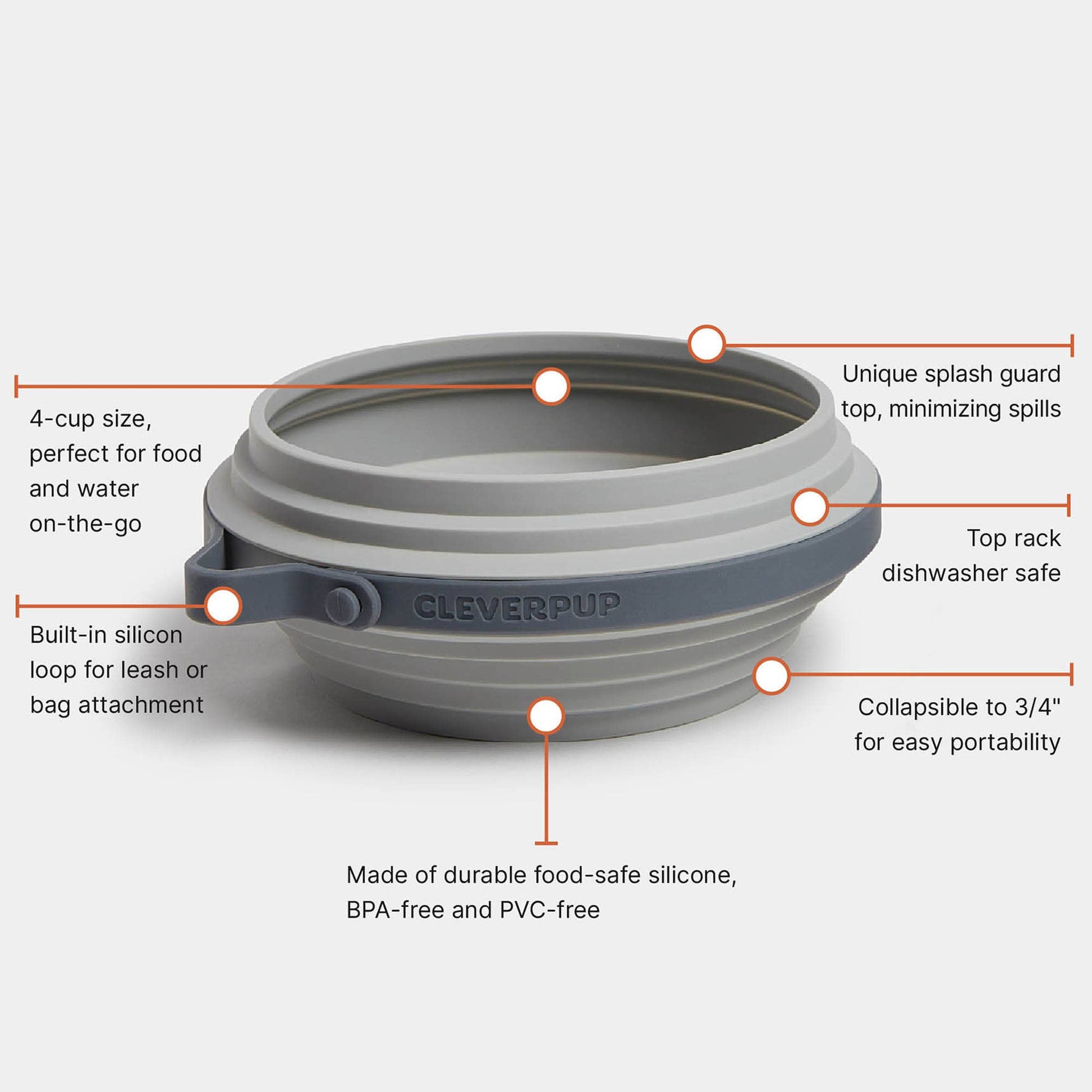 A food-safe silicone collapsible travel bowl for pups on the go.