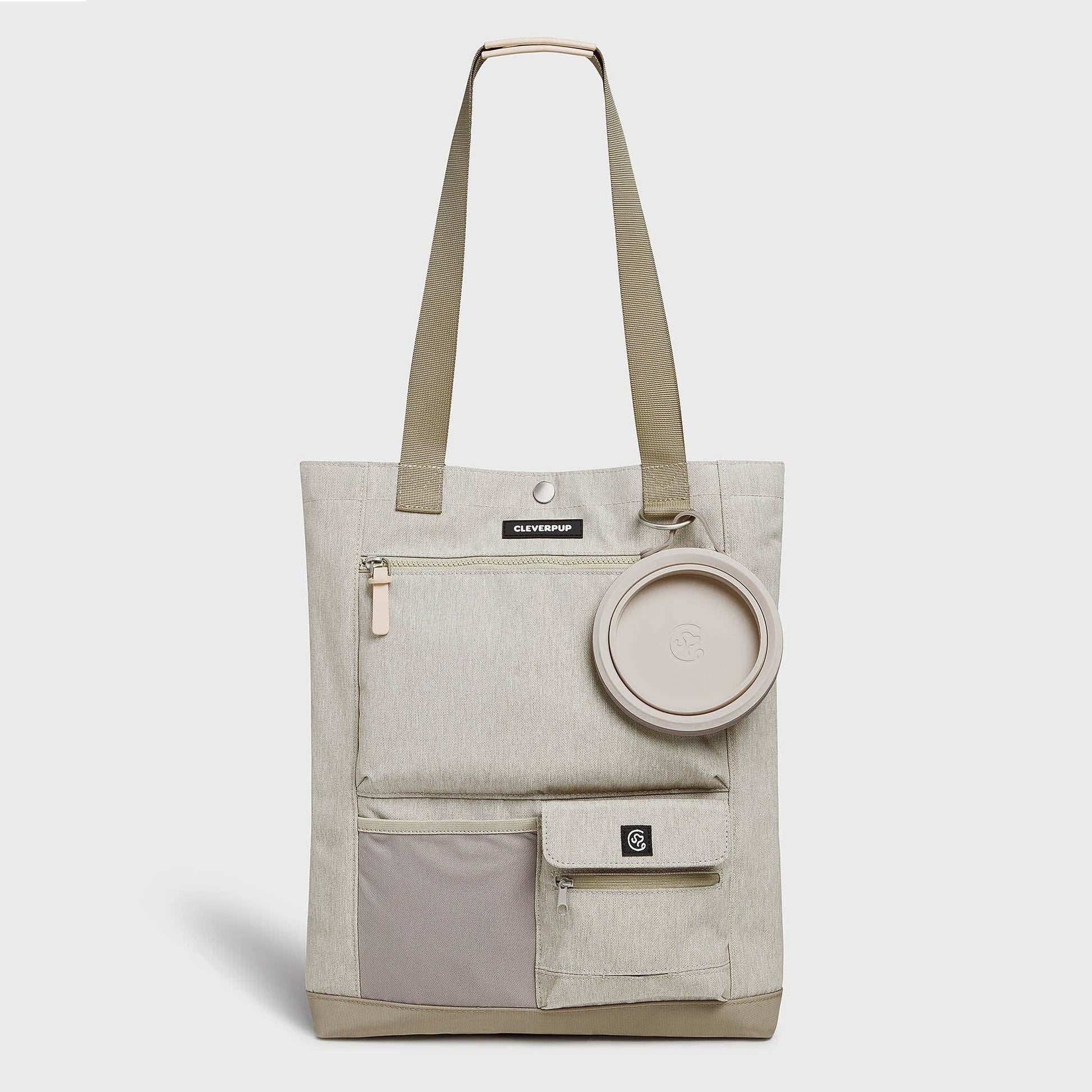 A stylish tote that organizes all your dog’s gear. Great for running errands or romping through the park. Includes a travel bowl.