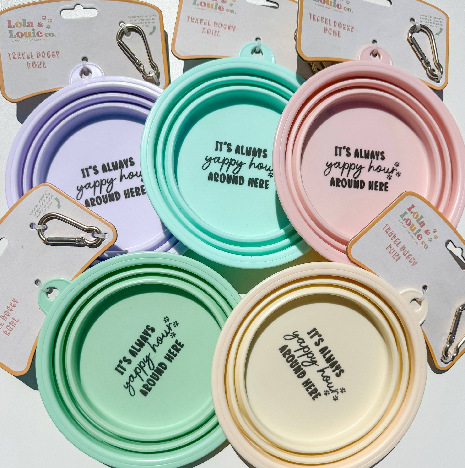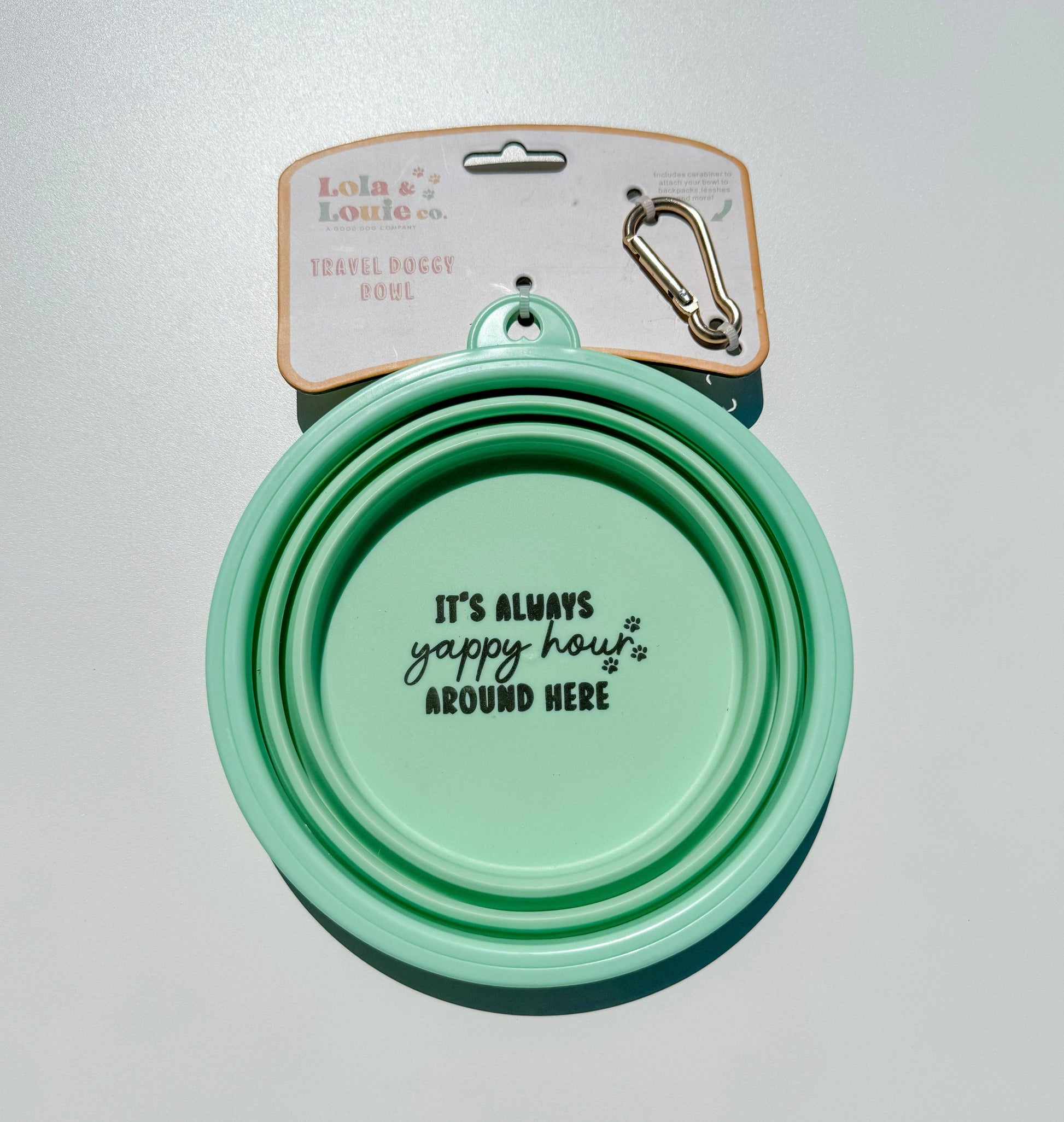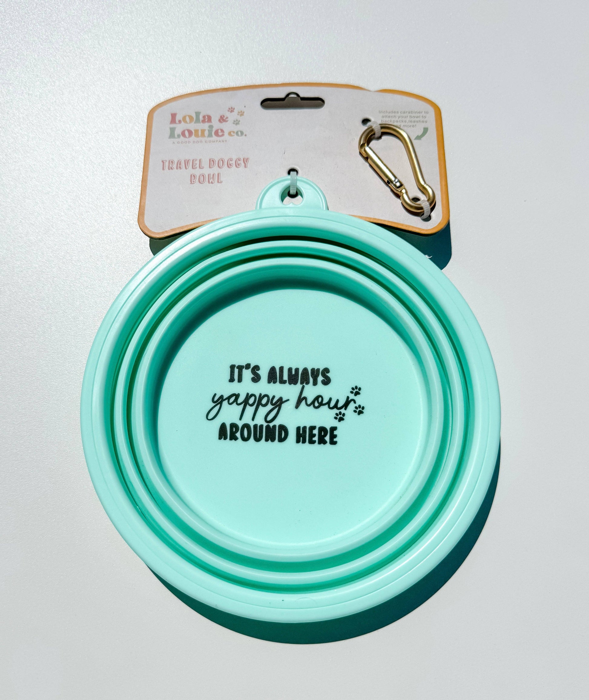 Get your pup ready for a tail-wagging adventure with the Doggy Travel Bowl! With fun colors and a playful design, it's always yappy hour for your dog on the go. Perfect for walks or road trips, this bowl ensures your pup stays hydrated and happy. Cheers to happy pups!