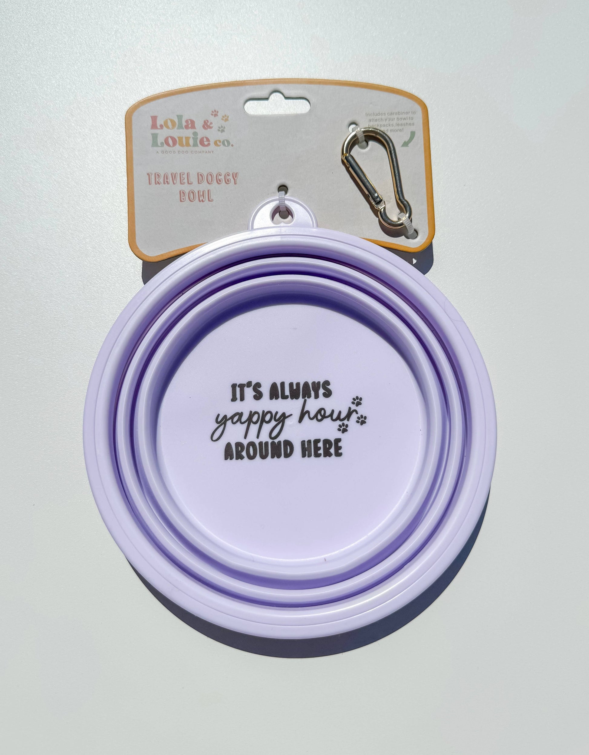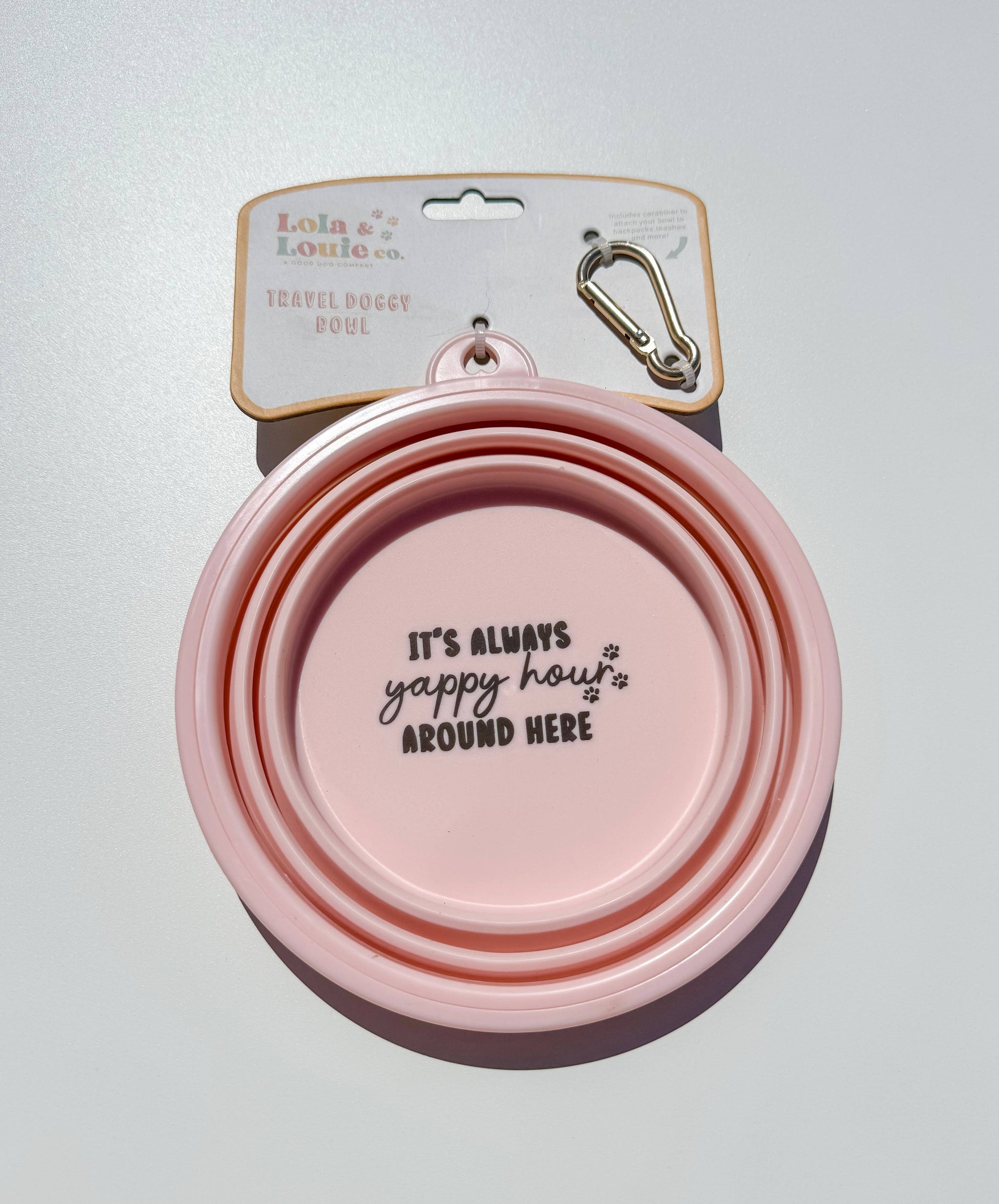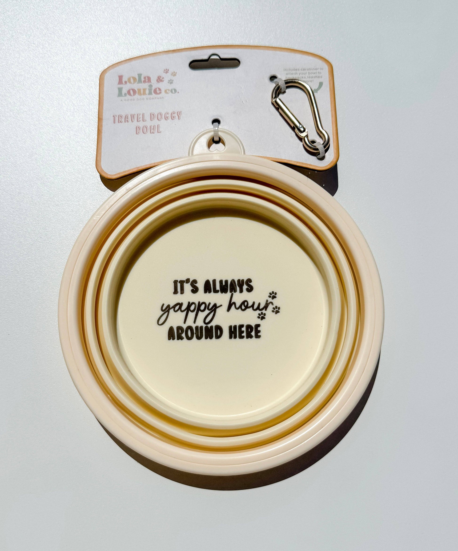 Get your pup ready for a tail-wagging adventure with the Doggy Travel Bowl! With fun colors and a playful design, it's always yappy hour for your dog on the go. Perfect for walks or road trips, this bowl ensures your pup stays hydrated and happy. Cheers to happy pups!